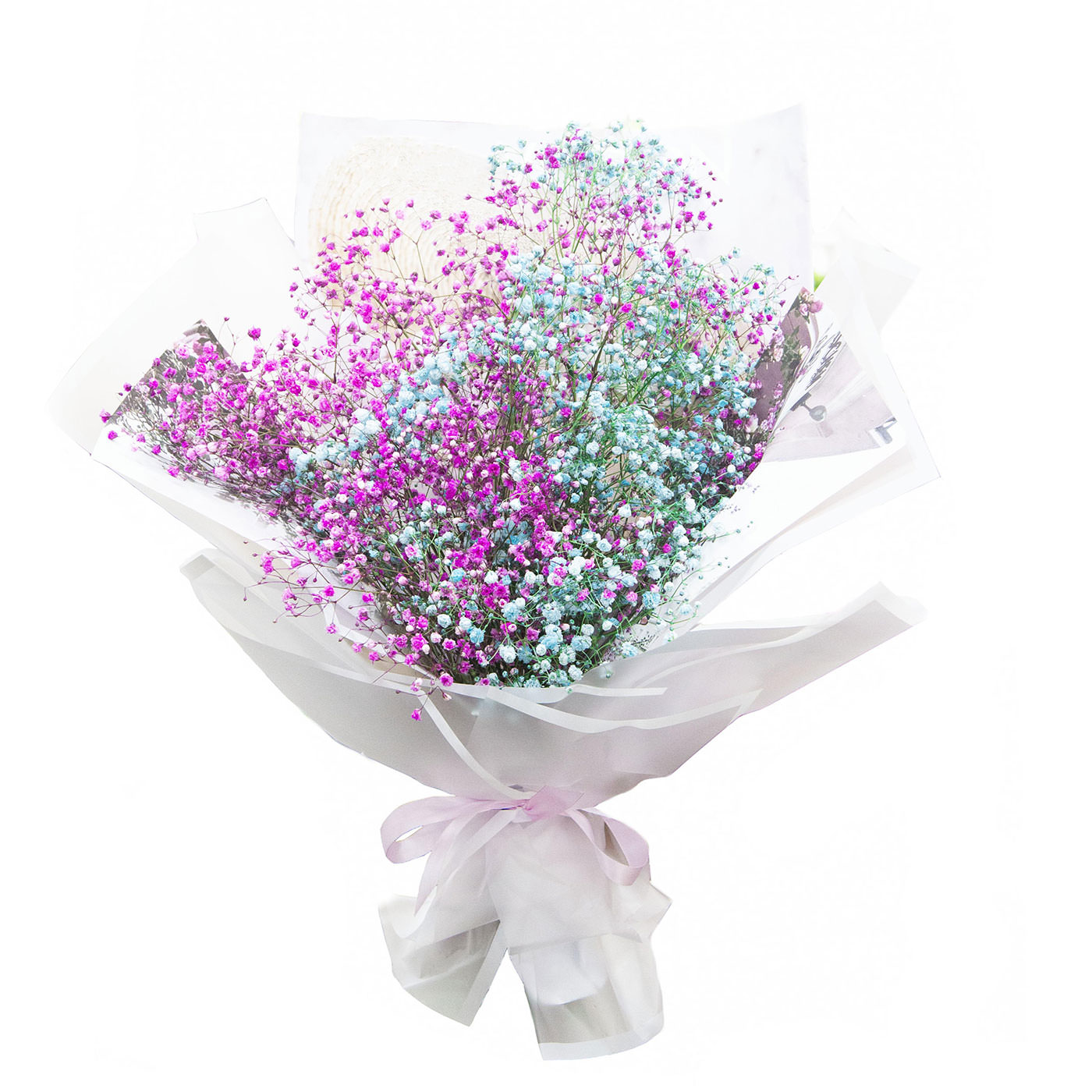 Гипсофила фиолетовая, зеленая. Упаковка (лента, пленка, крафт, сетка, пленка матовая)