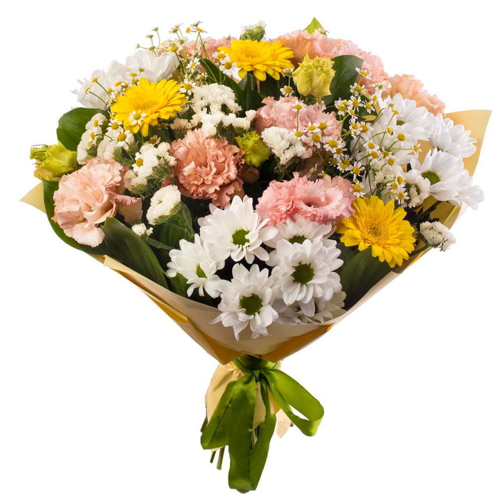 | Состав | Гвоздики, Герберы, Матрикарии, Ромашки, Хризантемы |